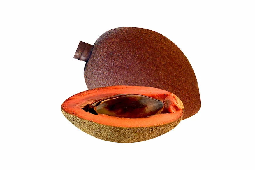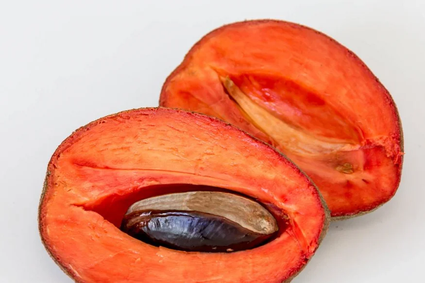 El zapote amazónico posee pulpa naranja intensa, textura cremosa y sabor dulce profundo. Es común en batidos y postres naturales.