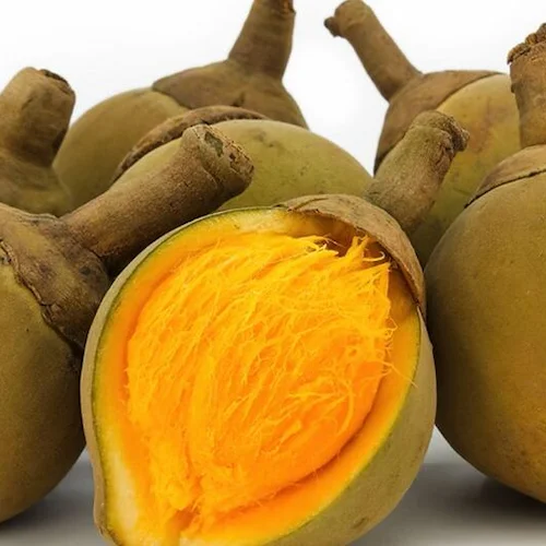 El mamey amazónico posee una pulpa anaranjada intensa, de textura suave y sabor dulce pronunciado. Se consume fresco o en batidos y postres naturales.