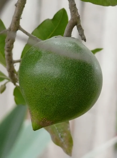 El caimito tiene cáscara morada o verde y una pulpa blanca lechosa que, al cortarse, forma una figura en estrella. Es una fruta dulce y refrescante.