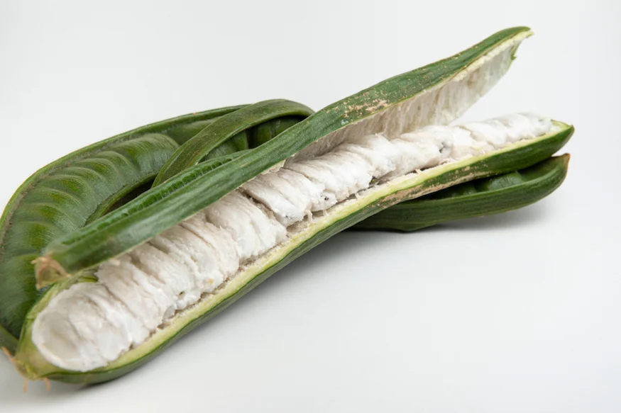 El pacae crece en largas vainas verdes que contienen semillas envueltas en una pulpa blanca algodonosa y dulce. Es muy popular entre niños y adultos en la Amazonía.