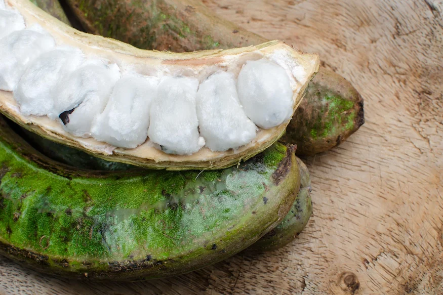 El macambo es una fruta nativa de la Amazonía peruana y pertenece a la misma familia del cacao. Su fruto es grande y alargado, con semillas blancas comestibles que pueden consumirse frescas o tostadas. En comunidades amazónicas es considerado un alimento energético tradicional.